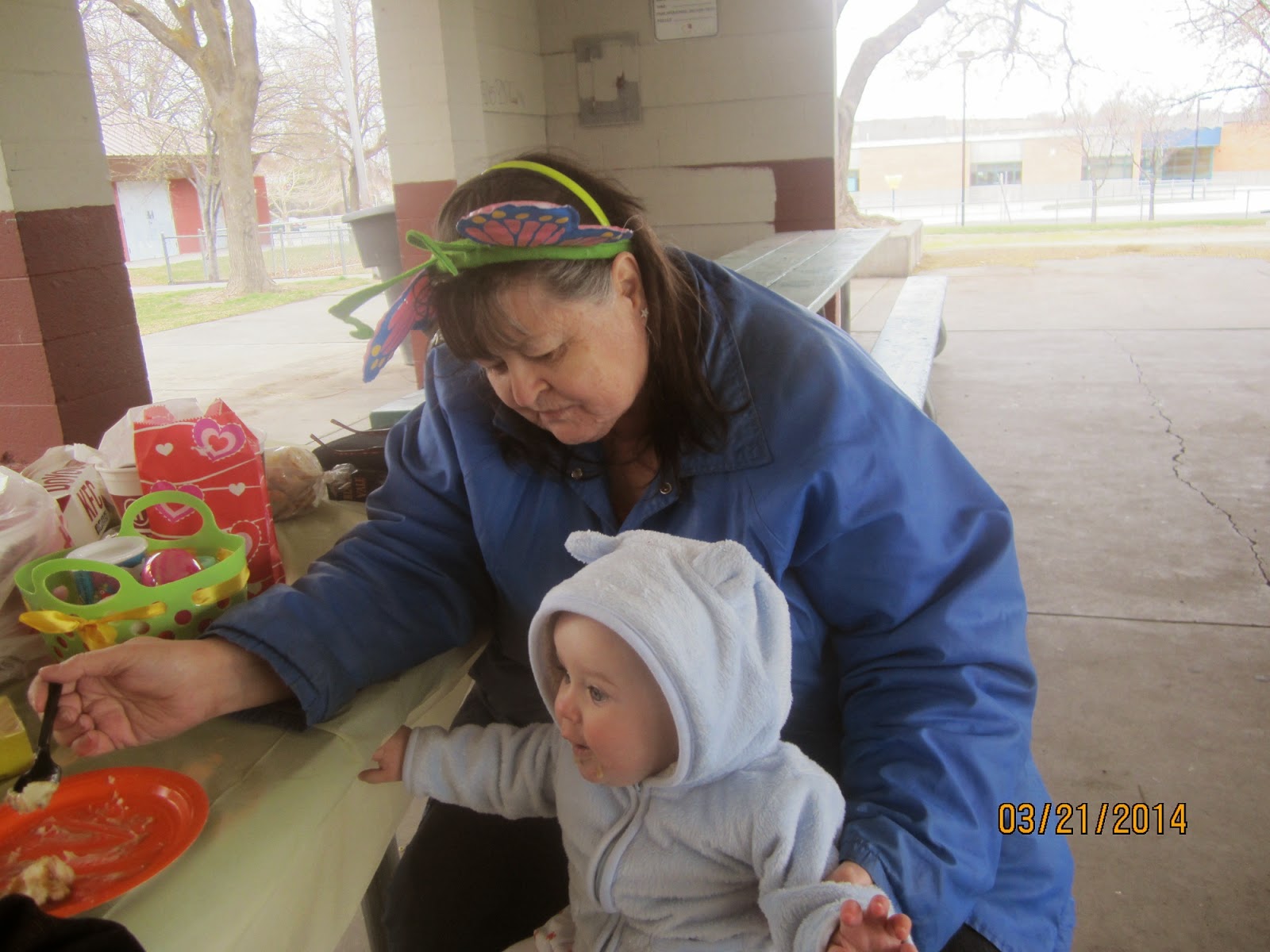 We spent Ostara at the park. I used the tables to put all the baskets out. There were lots of kids at the park so I used the tables.